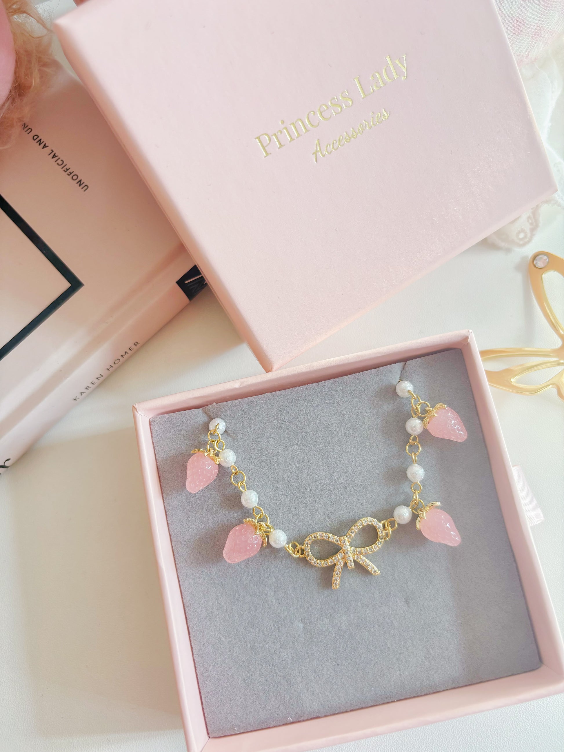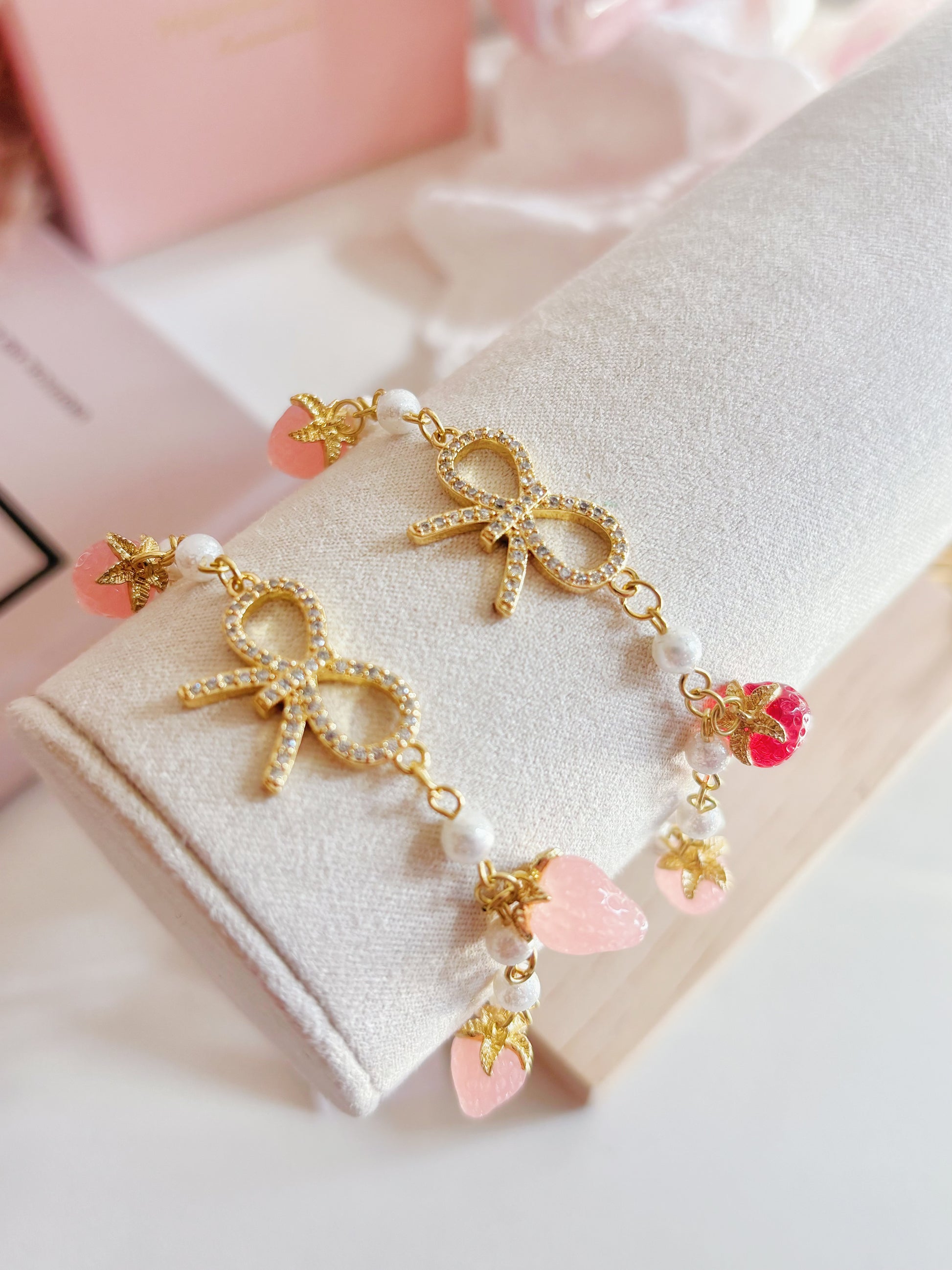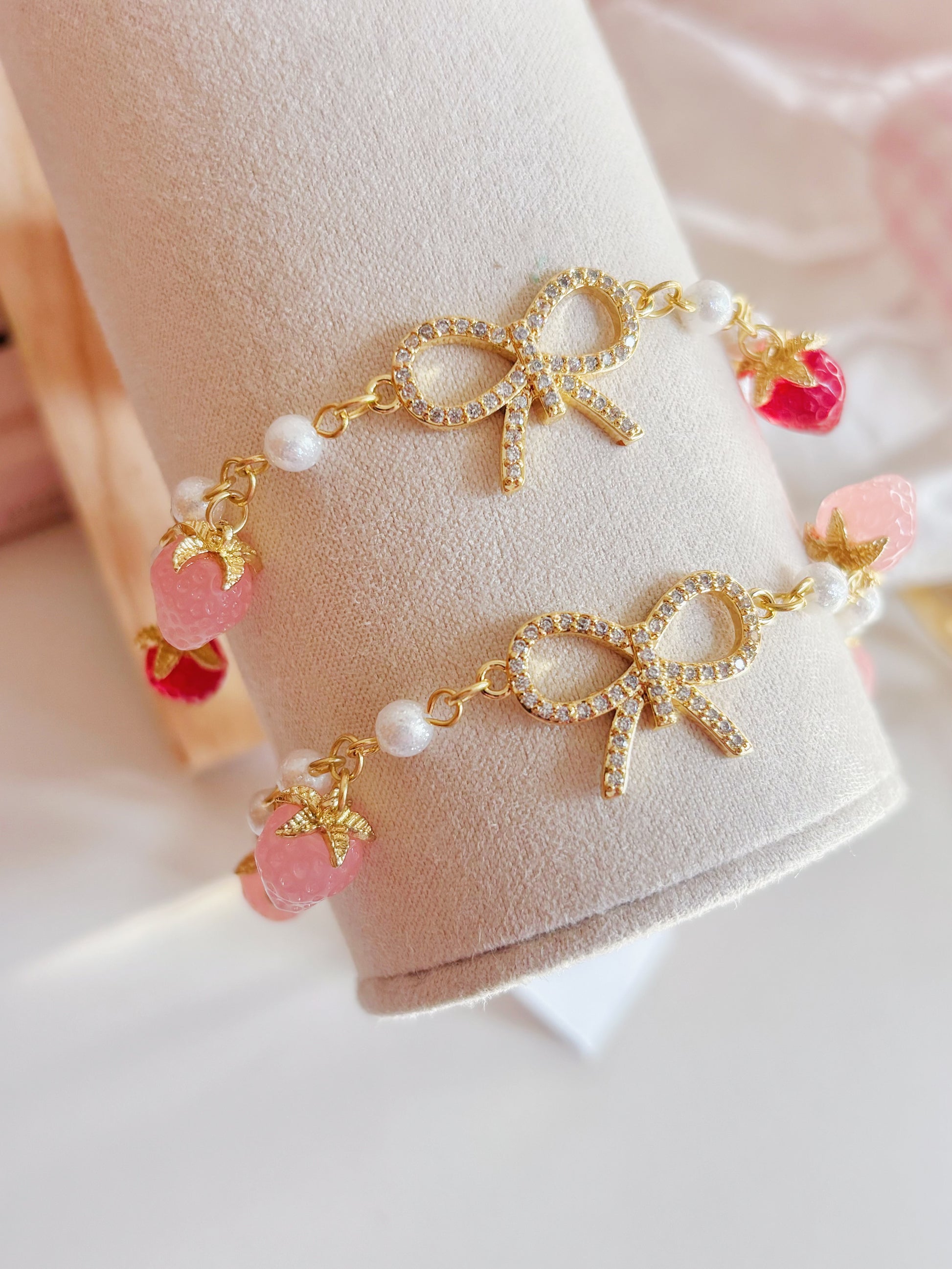 日本手工-金色蝴蝶結多莓珍珠手鏈