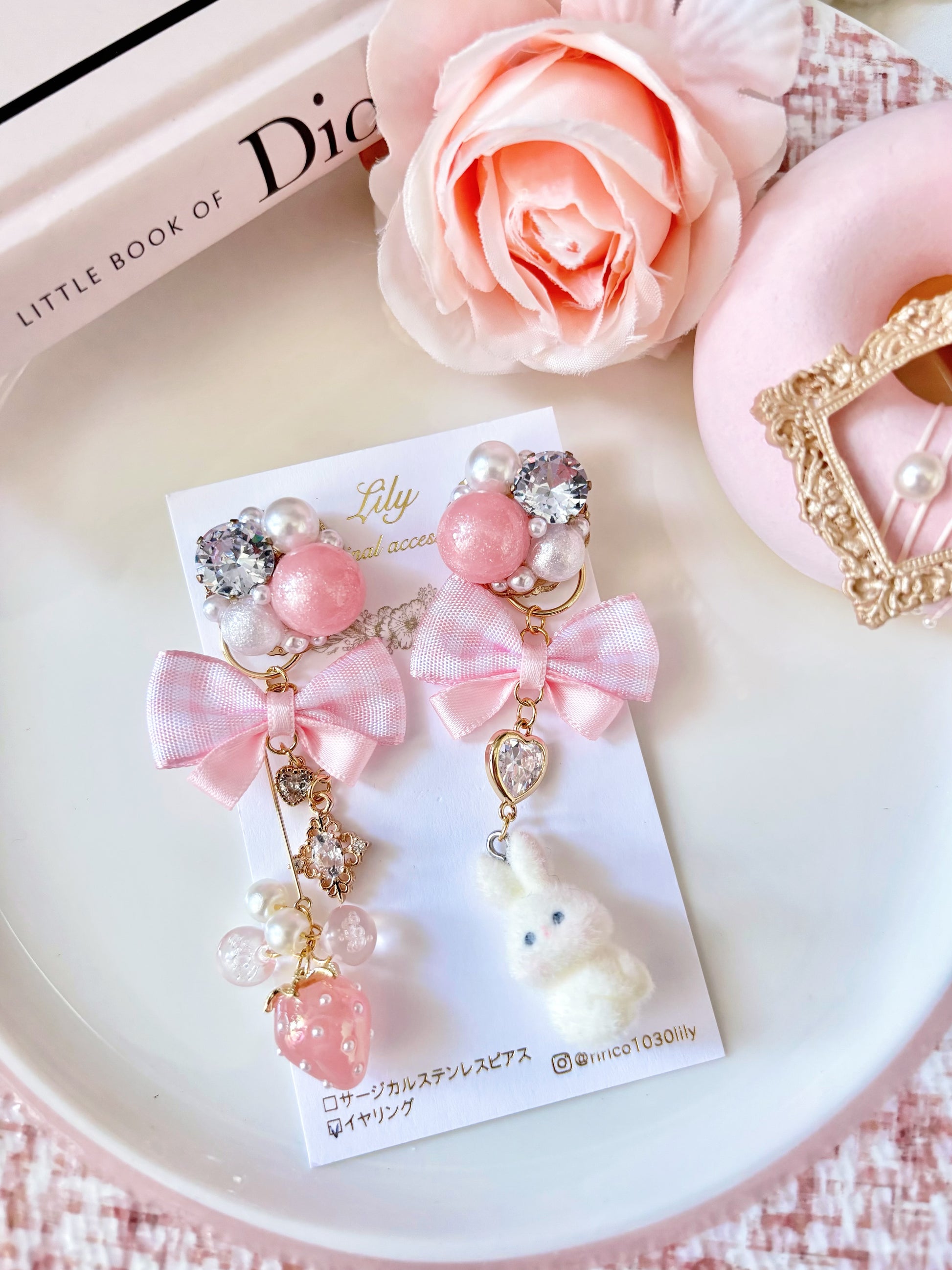 日本手工—公主甜美風蝴蝶結水晶耳夾款