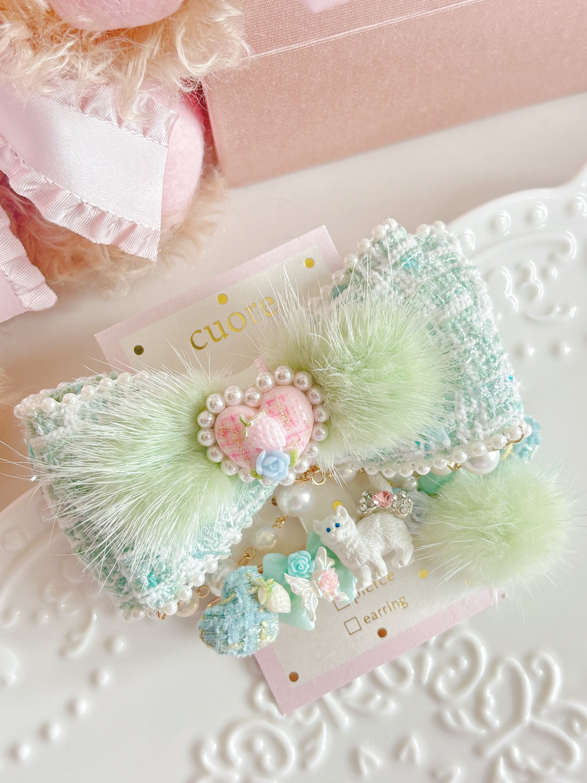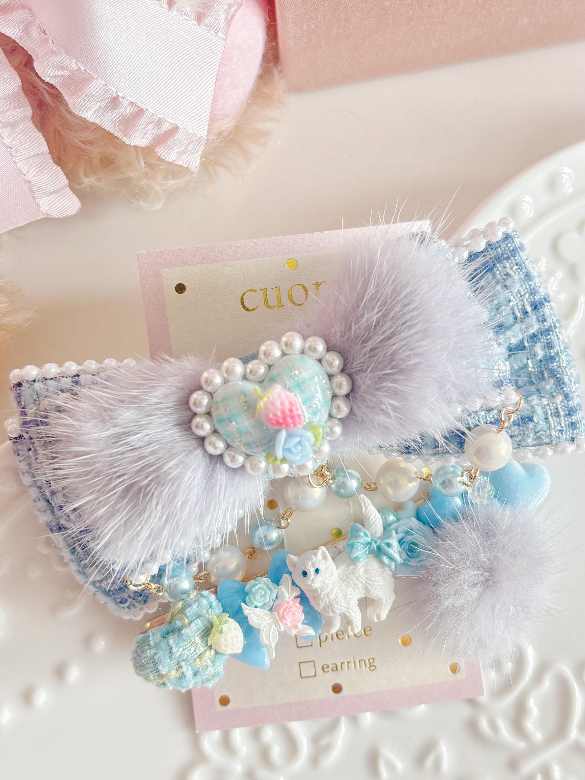 日本手工—限量小貓咪毛毛千鳥格髮夾