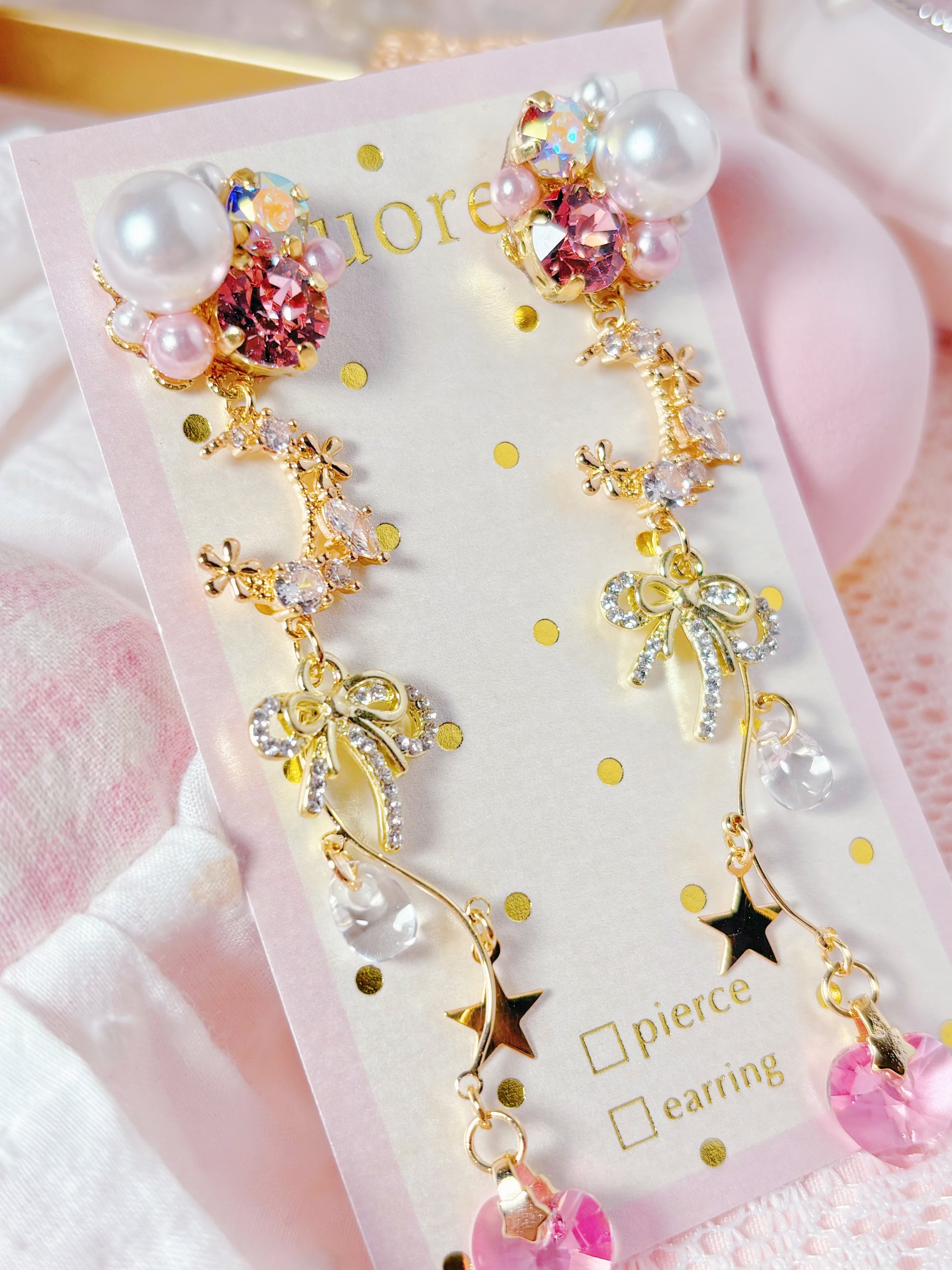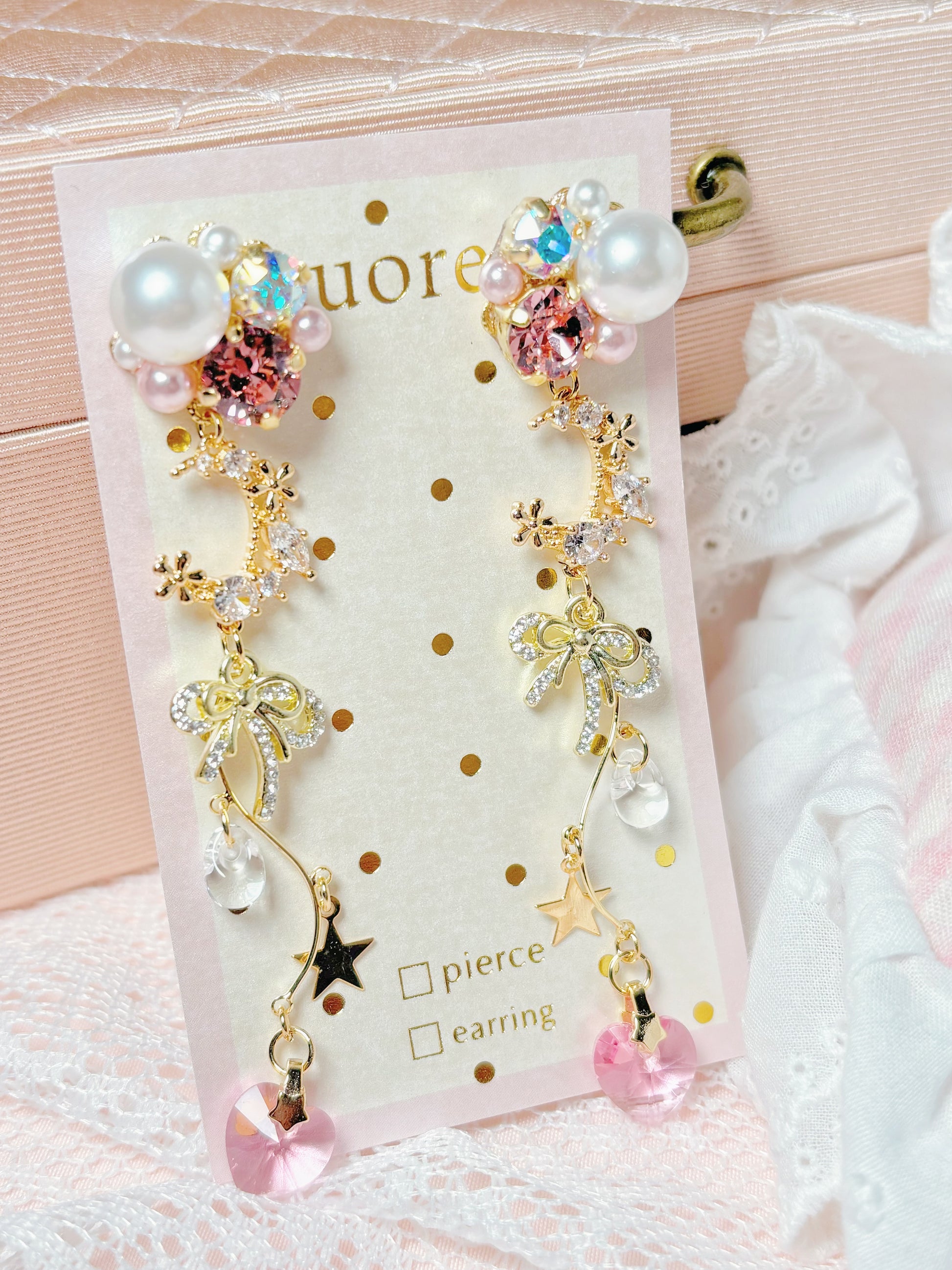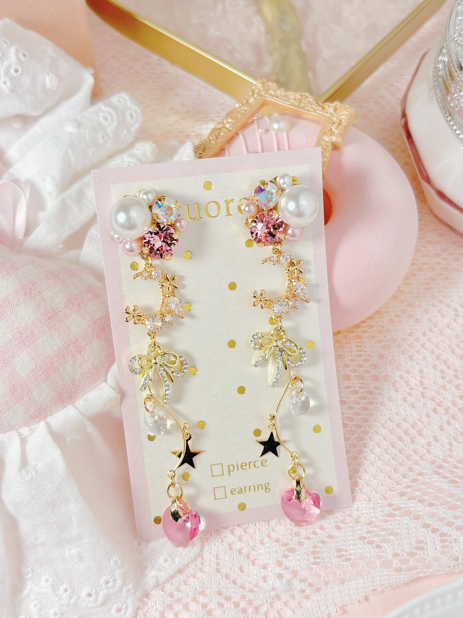 月亮珍珠粉紅色耳環