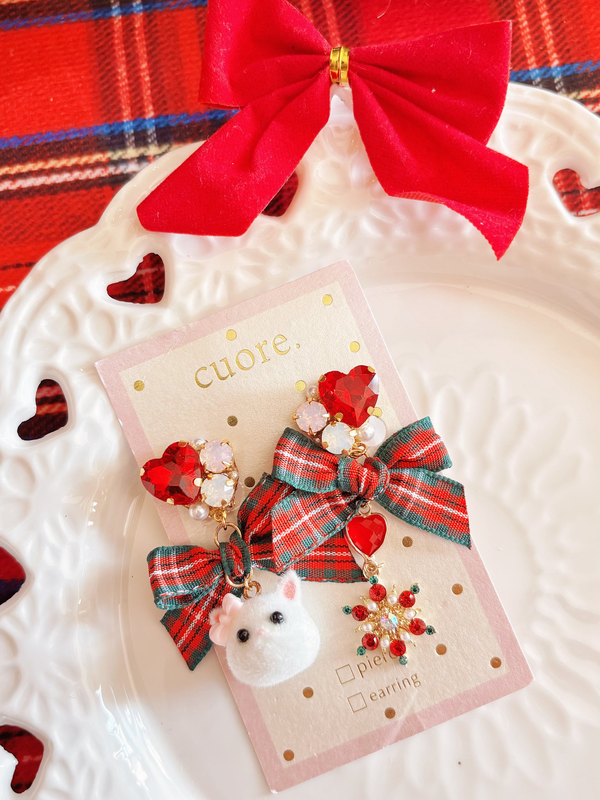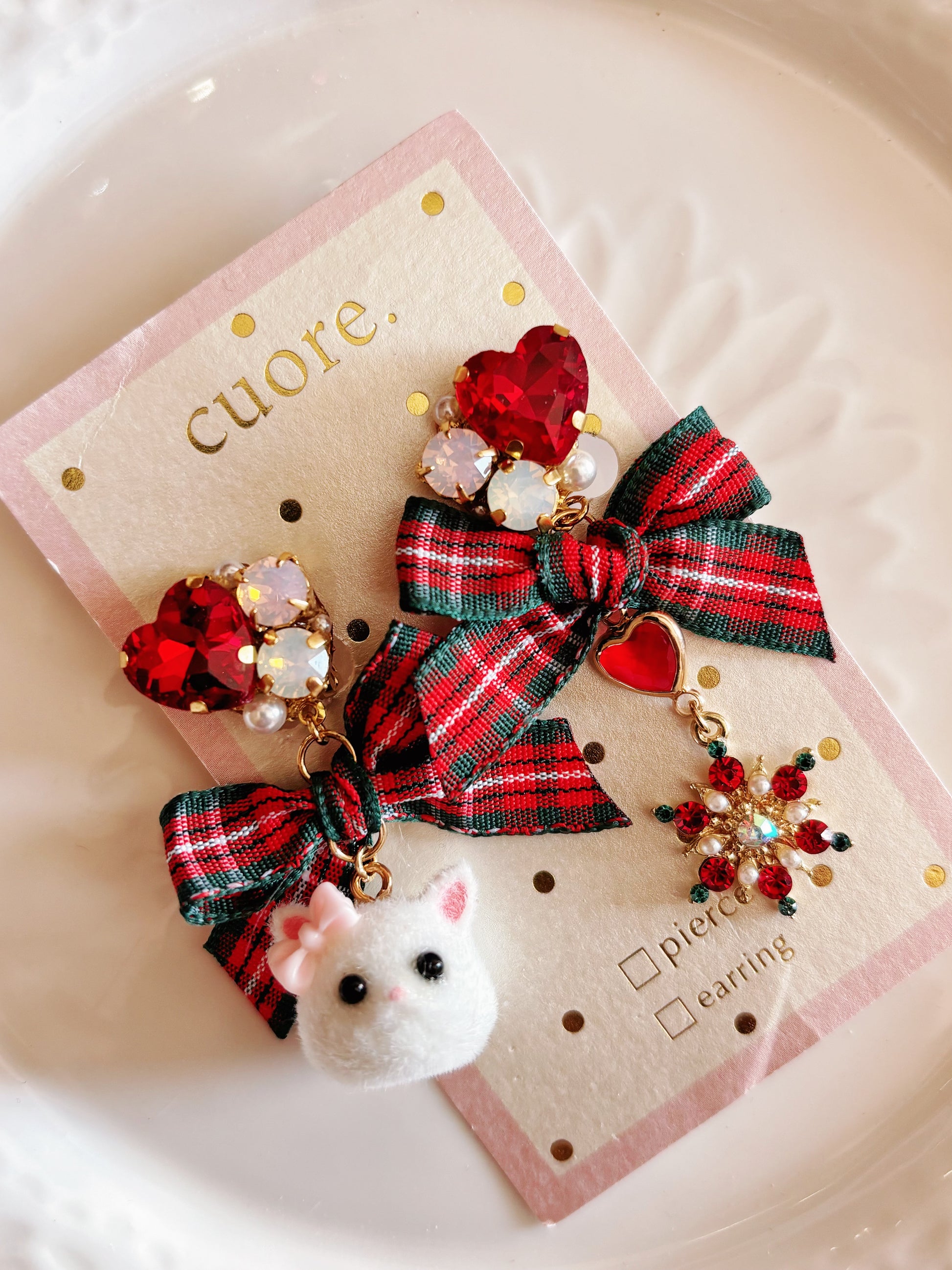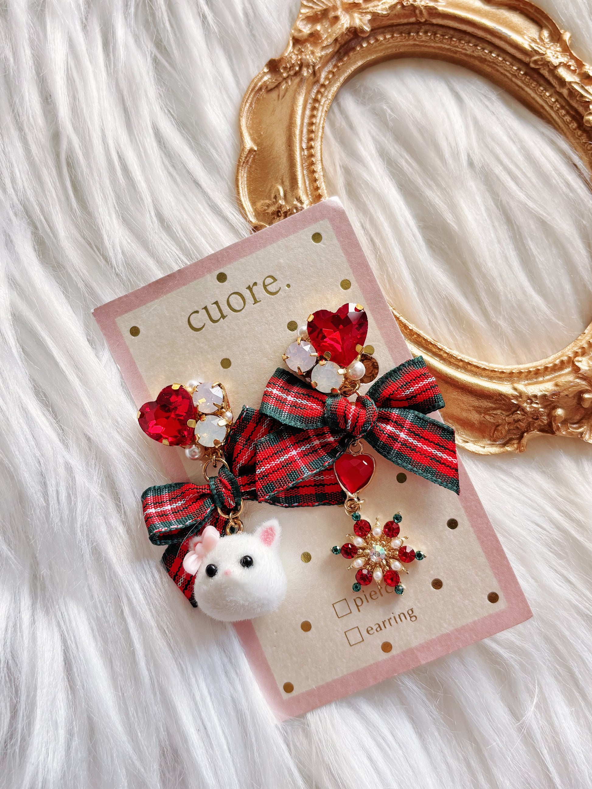 日本手工—聖誕小貓咪耳夾
