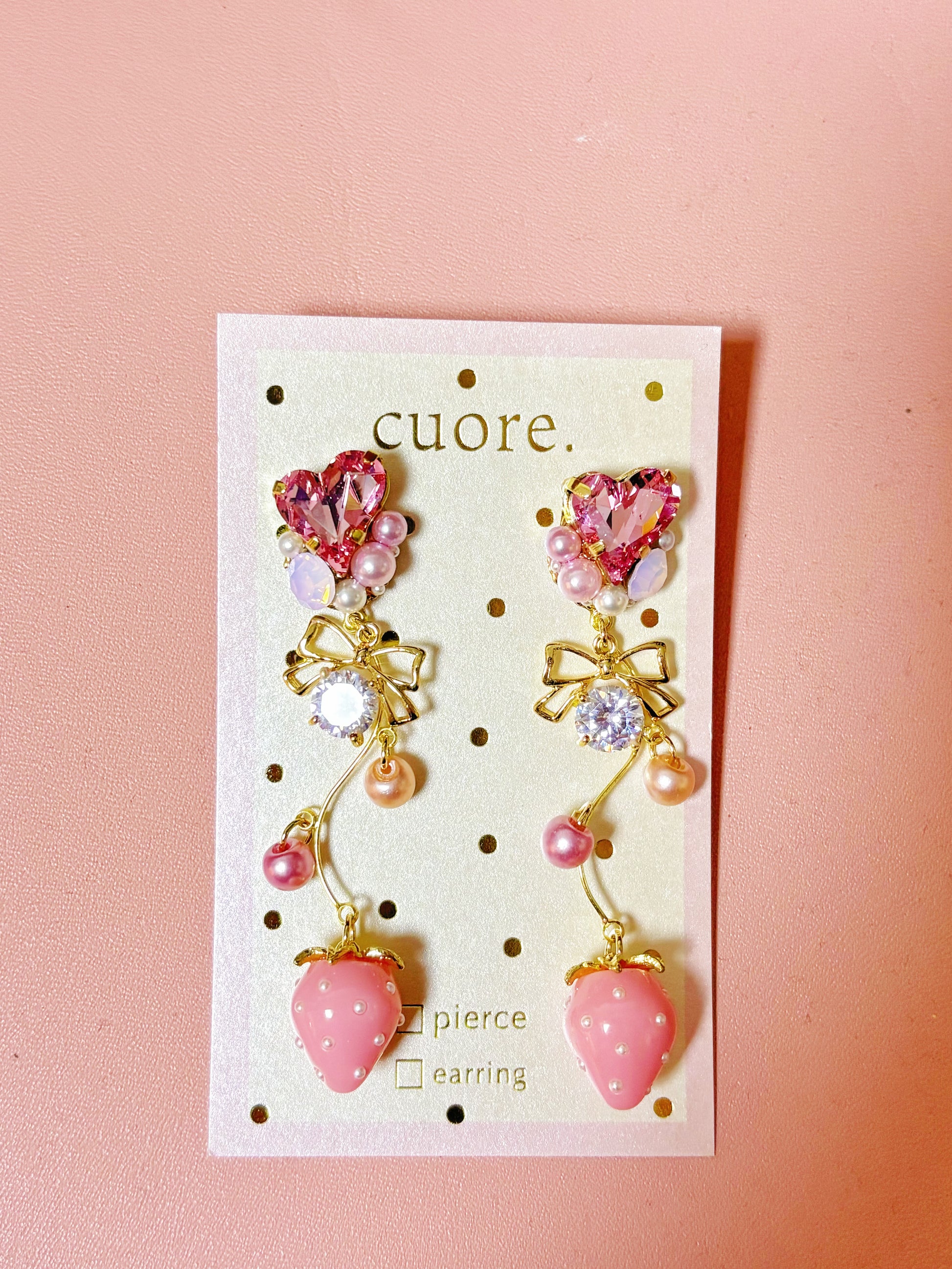 粉色愛心水晶草莓耳環