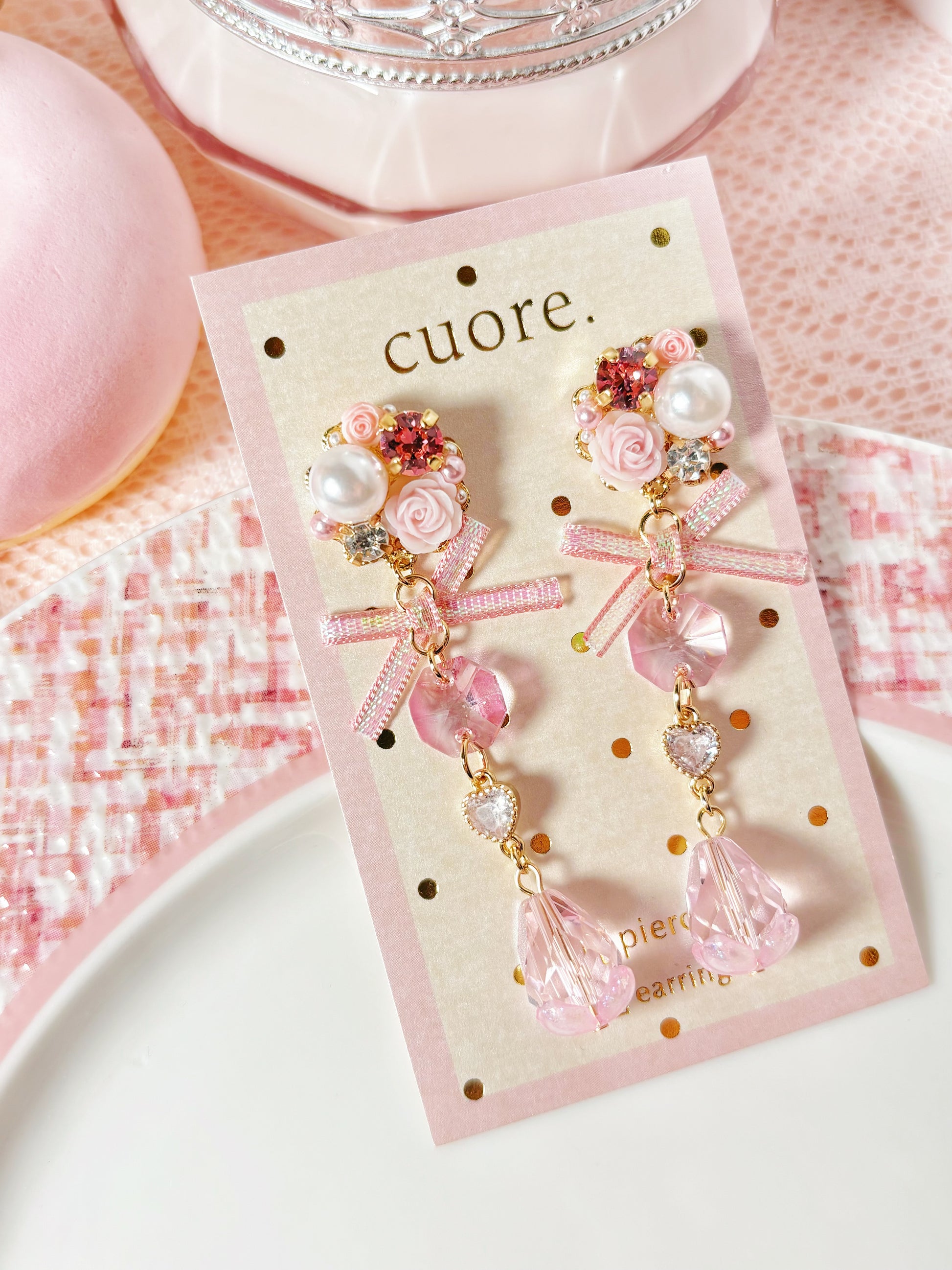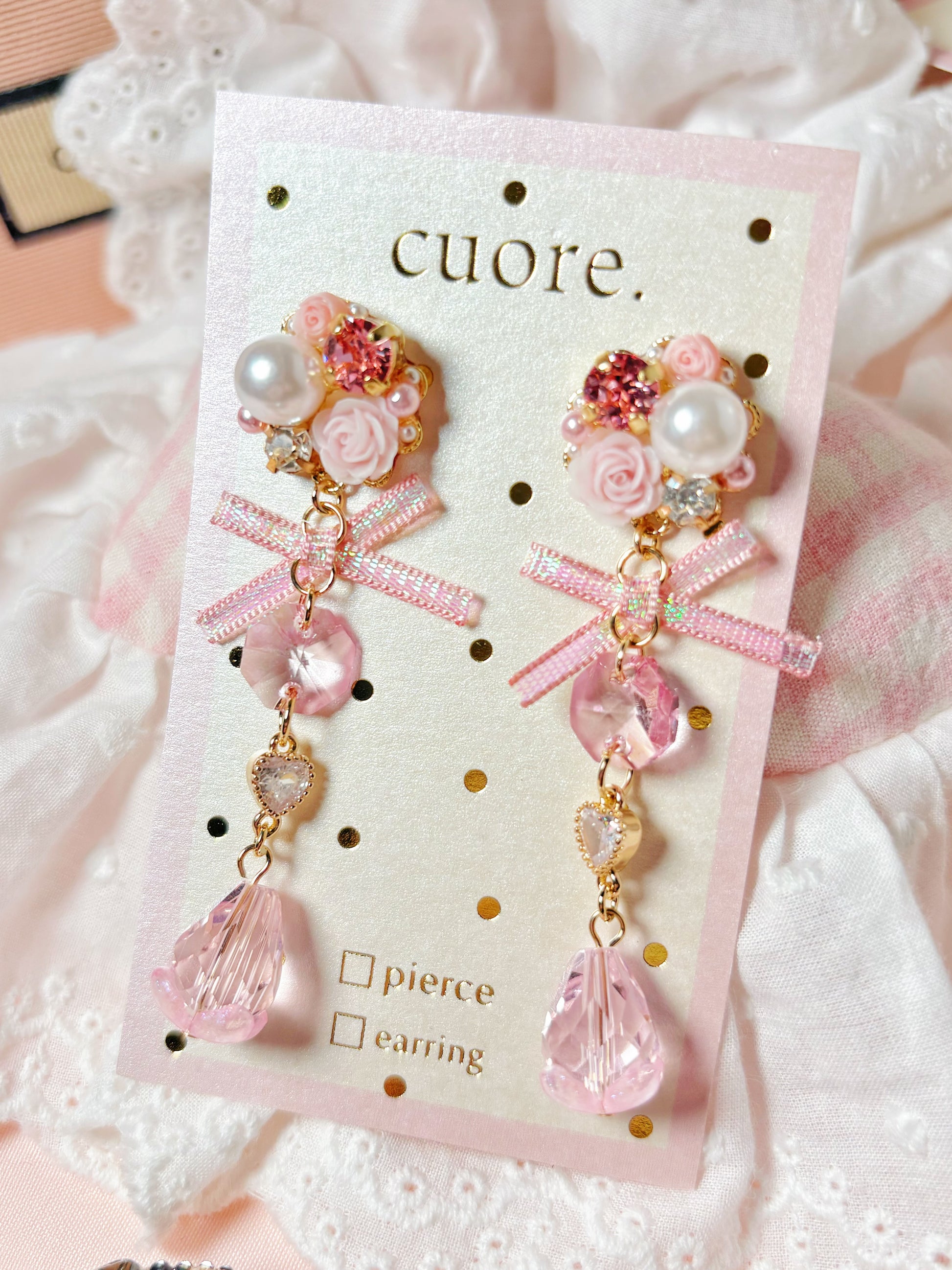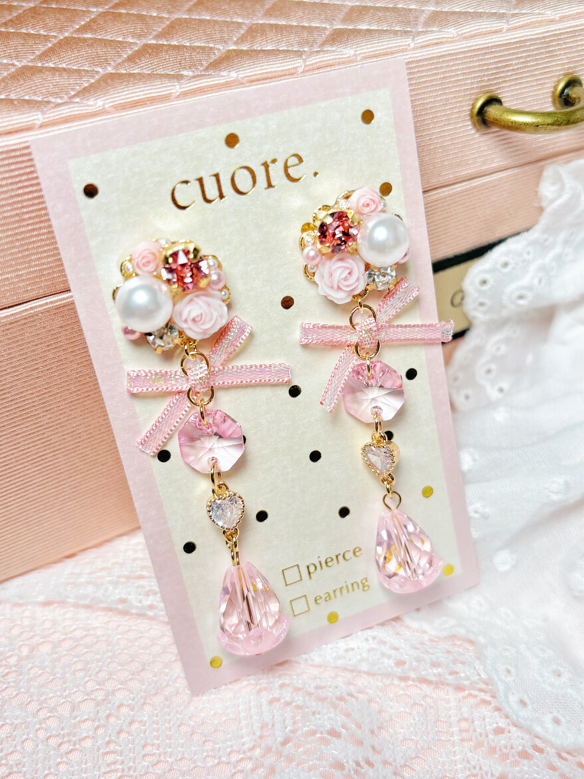 粉色水晶花花耳環