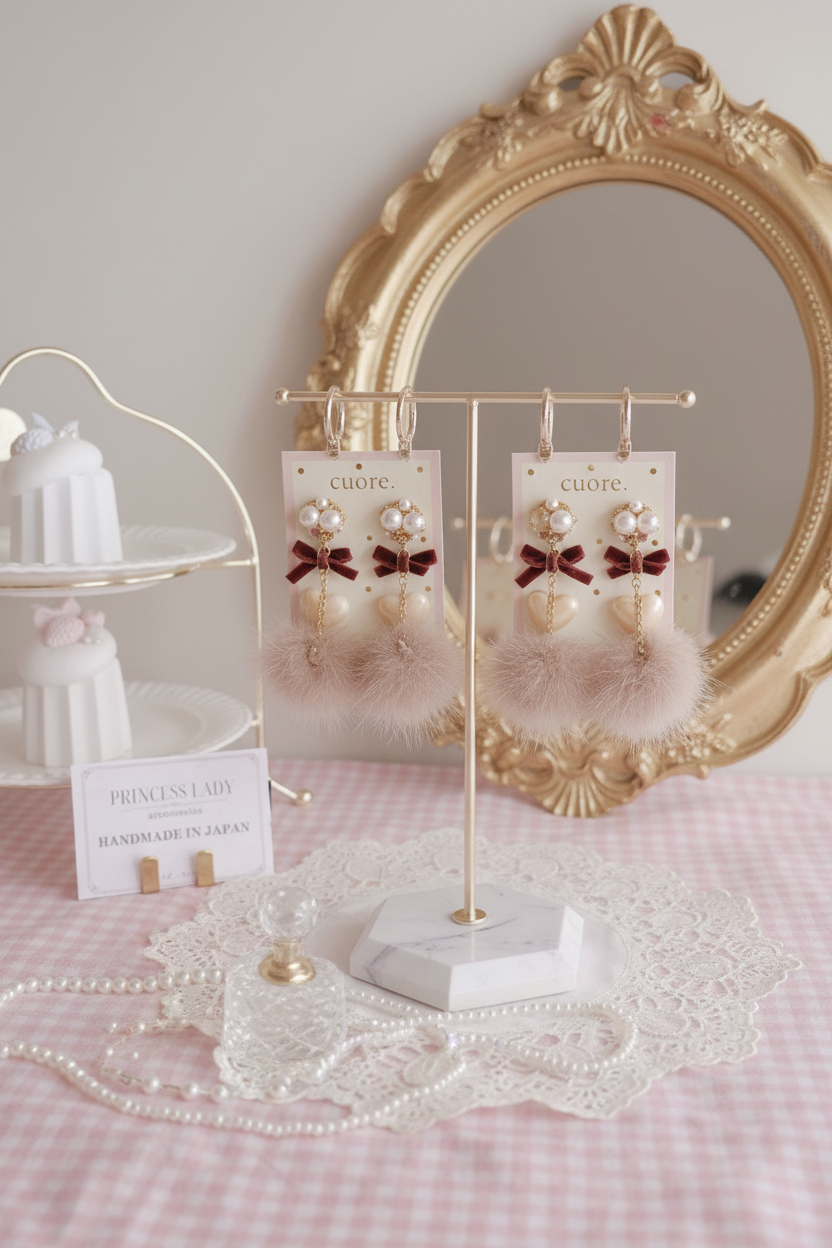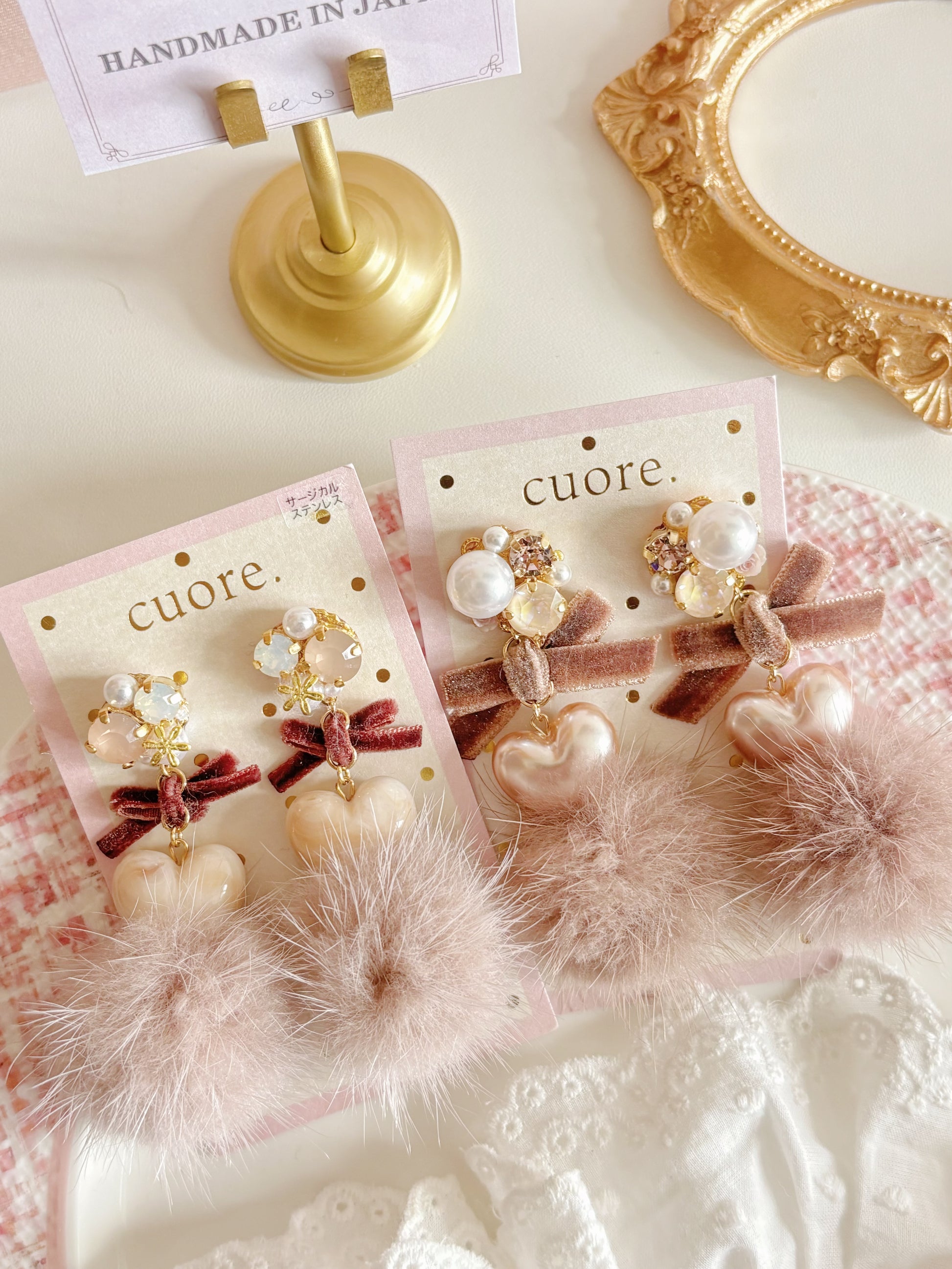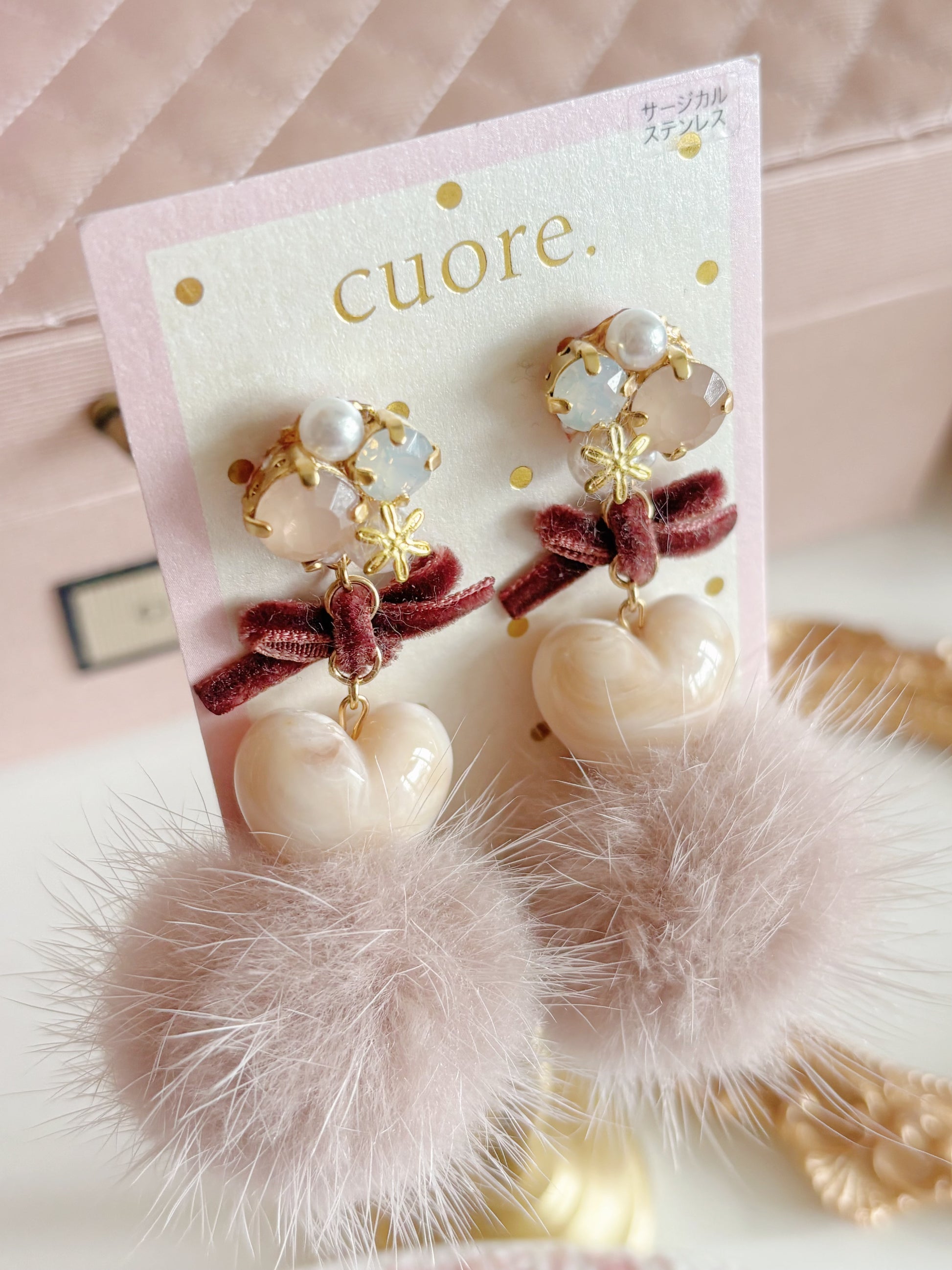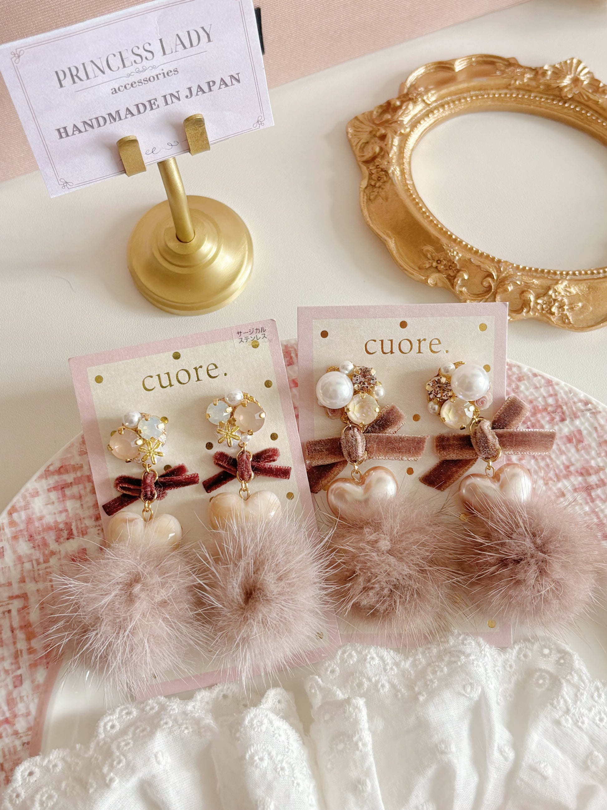 日本手工-冬日棕色水晶毛茸可愛耳環