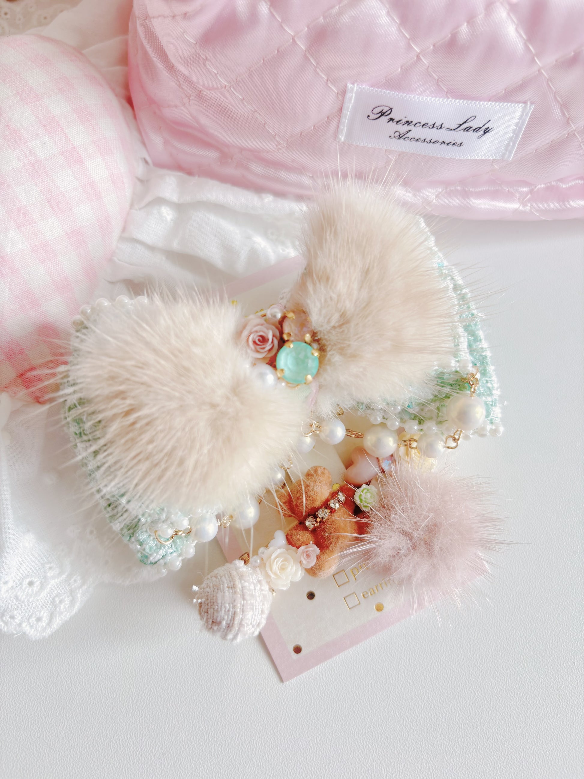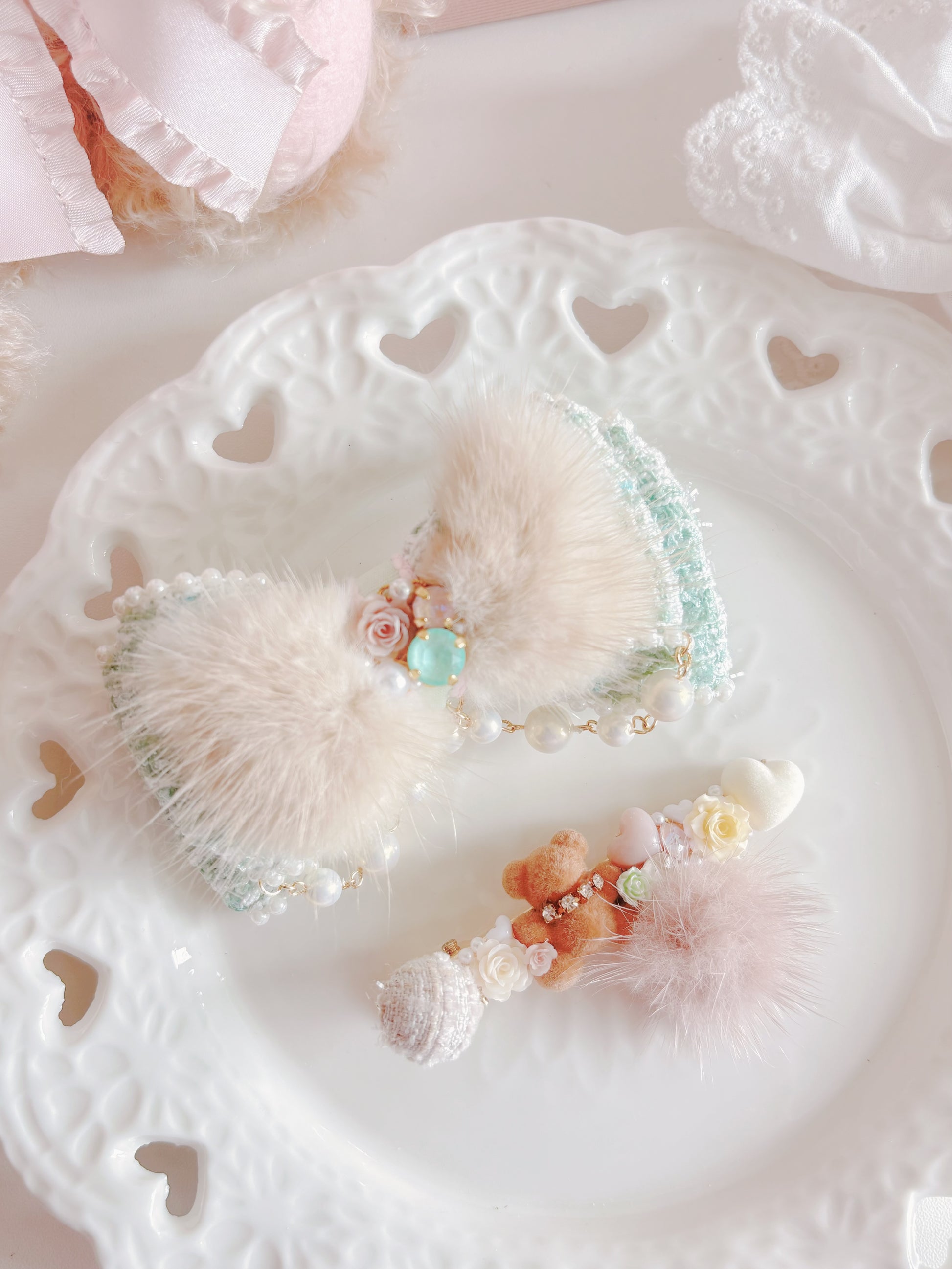 Cuore-限量版重工毛毛小熊華麗水晶髮夾